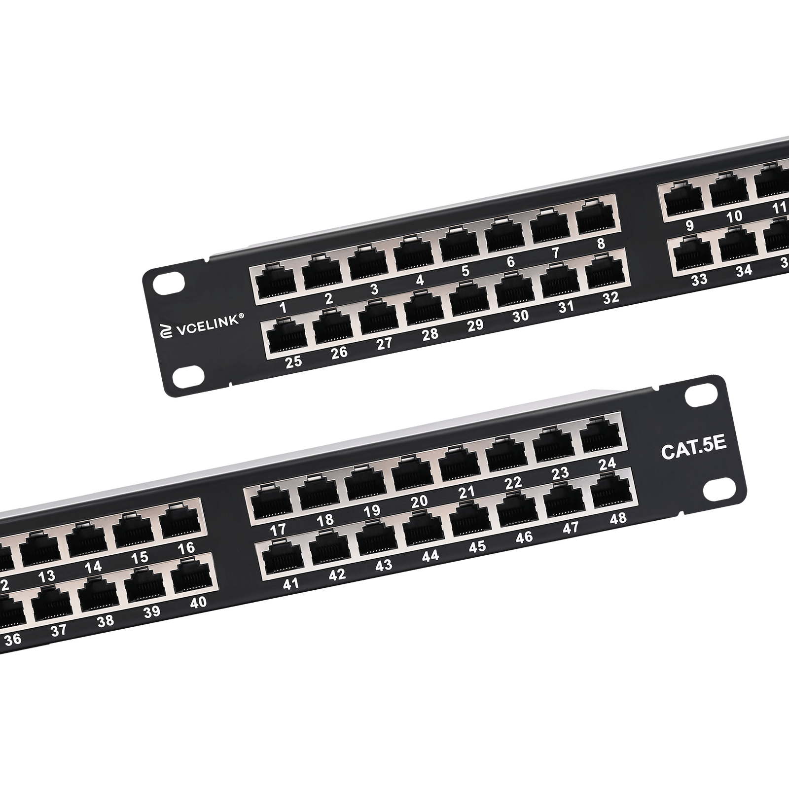Das VCELINK Ultra High Density 48-Port Patchpanel ist für die Netzwerkinstallation und -verwaltung auf engstem Raum konzipiert. Es bietet Platz für 48 Ports auf nur 1 HE Rackfläche und maximiert so die Portdichte in beengten Rackumgebungen. Das Patchpanel unterstützt Gigabit-Ethernet-Geschwindigkeiten mit Cat5e-Verkabelung und bietet so solide Leistung für Büro- und Unternehmensnetzwerke. Nutzen Sie unser hochdichtes RJ45-Patchpanel zur Zentralisierung und Organisation mehrerer Netzwerkverbindungen für einfache Wartung, Upgrades und Fehlerbehebung.