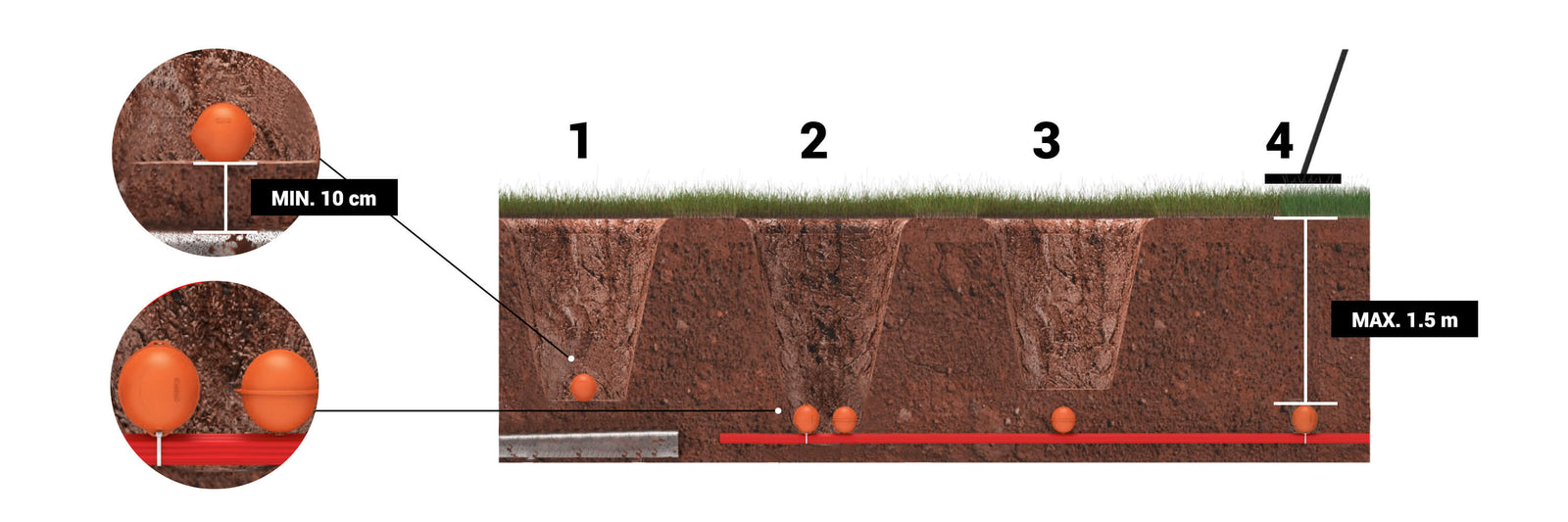 - Einfaches Markieren von Begrabenen Leitungen