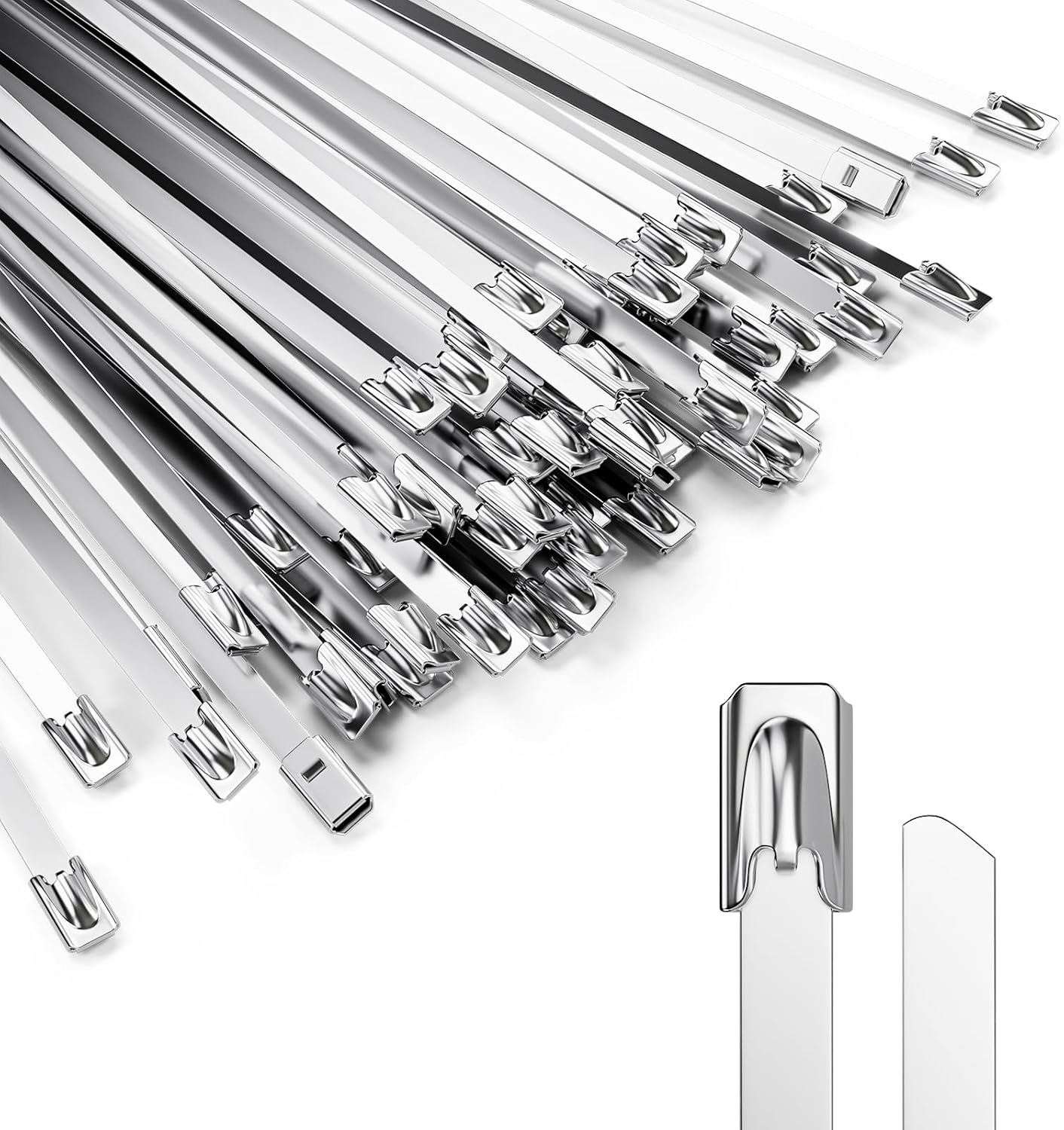 Metal Zip Ties are designed for heavy-duty, long-lasting fastening in demanding environments. Made from 304 stainless steel, these self-locking metal zip ties deliver exceptional tensile strength, corrosion resistance, and heat tolerance, ensuring secure bundling where plastic ties fail. With a 11.8-inch length, 0.18-inch width, and a maximum bundle diameter of 3.15 inches, they are ideal for outdoor fences, cable management, pipes, vehicles, farms, automotive parts, exhaust wraps, and industrial installations. The smooth self-locking mechanism provides a tight, vibration-resistant hold for cleaner, more reliable results, making these stainless steel cable ties a dependable choice for professional, outdoor, and high-temperature applications.