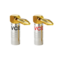 VCELINK Right Angle Banana Plugs are designed for secure and efficient speaker connections in home theater systems, wall plates, and audio setups. Featuring a 90-degree right-angle design, these connectors save space and allow for easy installation in tight areas. The 24K gold-plated contacts provide reliable conductivity and corrosion resistance, while the dual-screw fastening ensures a firm grip on 12–18 AWG speaker wires. Ideal for professional audio installations or home entertainment systems, these banana plugs deliver stable signal transmission and a clean, organized finish.