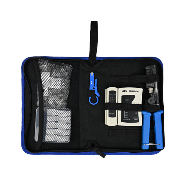 This network tool kit is designed for network engineers, technicians, and novices. It aims to simplify and enhance the efficiency of network installation. This toolkit includes the following tools and accessories: