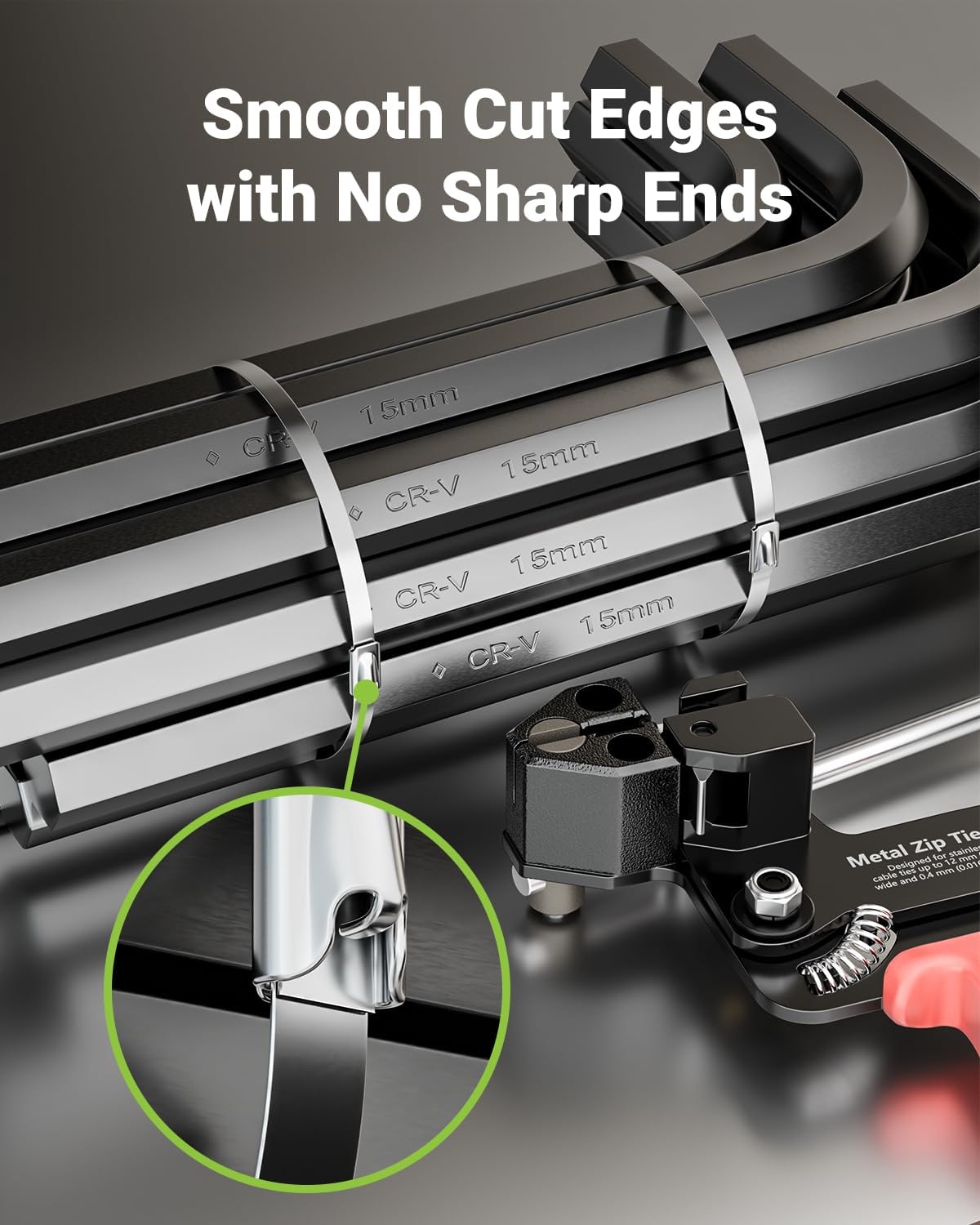 -Compatible with stainless steel cable ties up to 12 mm (0.47 in) wide and 0.4 mm (0.016 in) thick, ideal for fencing, bundling, and heavy-duty fastening tasks.