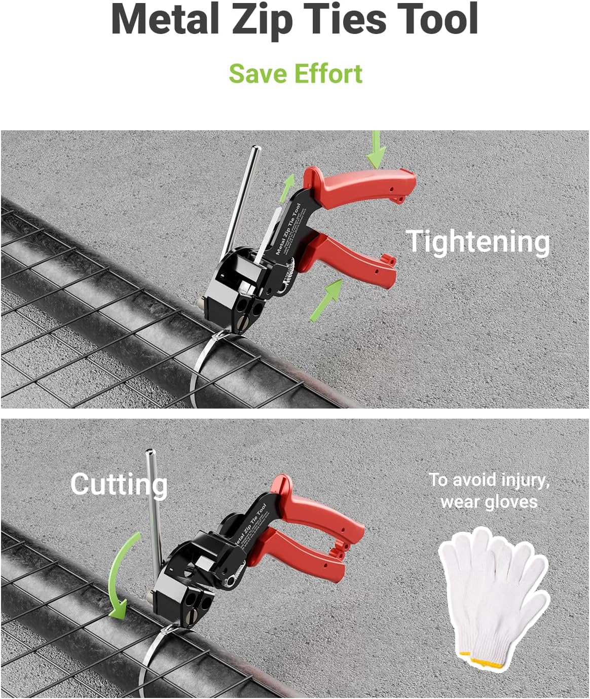 Metal Zip Tie Tool is designed for heavy-duty fastening and secure installation in demanding applications. This professional stainless steel zip tie tool includes 100 pcs 11.8-inch 304 stainless steel zip ties, delivering high tensile strength, corrosion resistance, and long-term durability. Engineered as a zip tie tensioner and cutter, it tightens metal cable ties evenly and trims excess cleanly for a safe, professional finish. Ideal for chain link fences, exhaust pipes, HVAC systems, automotive repairs, industrial equipment, and outdoor installations, this metal zip tie gun improves efficiency, stability, and overall installation quality—making it a reliable solution for contractors, mechanics, and serious DIY users who require secure, vibration-resistant fastening.